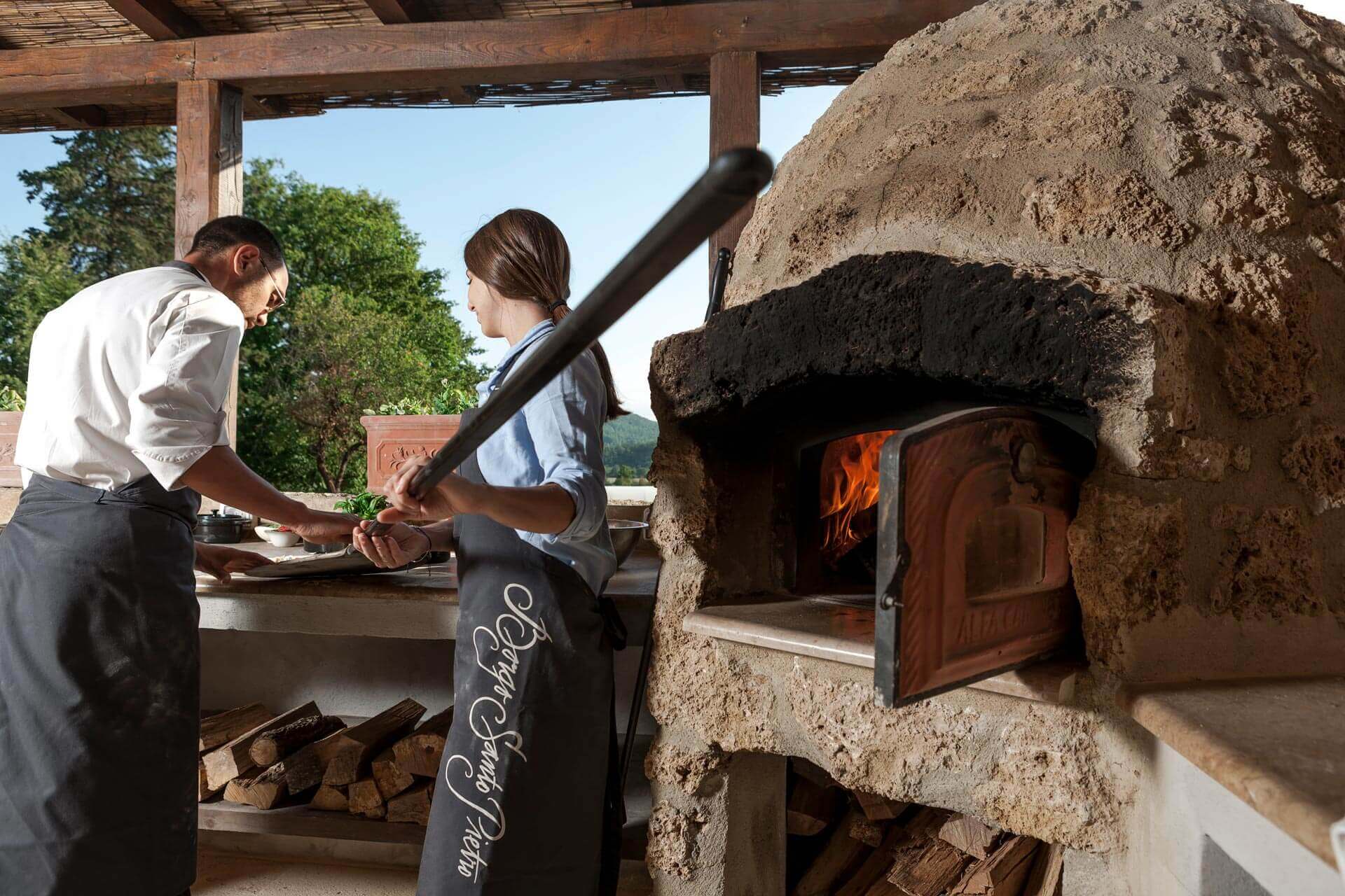 Concediti l’incredibile cibo e vino che la Toscana è famosa in tutto il mondo sperimentando la nostra filosofia “dalla fattoria al piatto” in azione. Alzati presto con il nostro bestiame e vivi l’esperienza della mungitura delle pecore, quindi salutalo nel nostro caseificio artigianale dove puoi vederlo trasformarsi in deliziosi formaggi proprio davanti ai tuoi occhi. Impara a fare la pasta fresca con la nostra mamma locale alla Borgo Cooking School. Avvicinati alle nostre uve mentre visiti il nostro vigneto di 12 acri, quindi risveglia il tuo palato in una sessione di degustazione di vini con il tuo sommelier personale. Scopri i benefici della salute dell’intestino mentre prepari piatti fermentati creativi nel Food Lab da gustare all’aria aperta del nostro orto. I tavoli VIP e le esperienze culinarie esclusive con menu speciali soddisfano sia i buongustai esperti che i golosi.