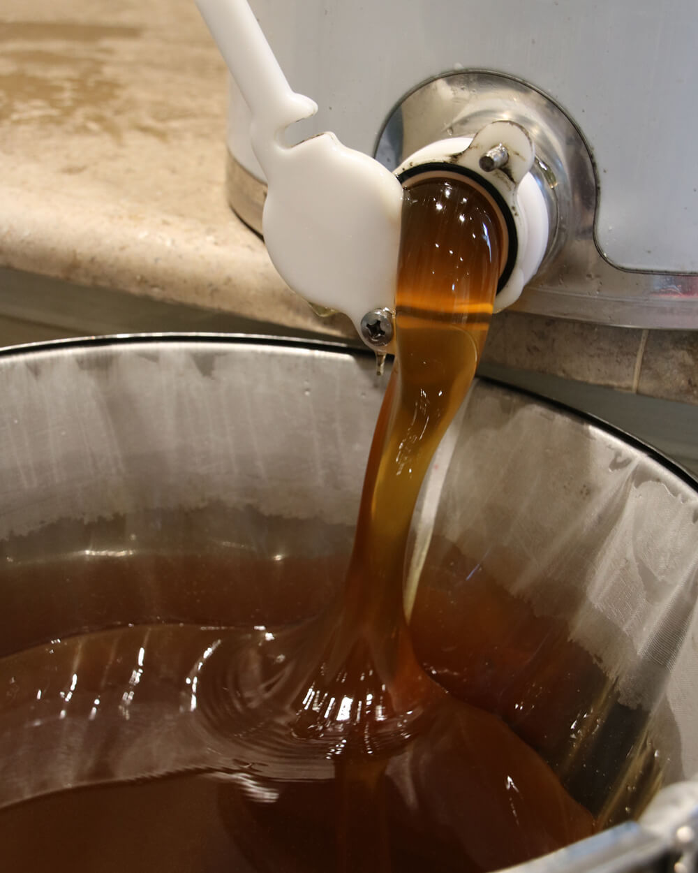 Indossa un abito da apicoltore e scopri l’intricato mondo delle api con il nostro apicoltore mentre estrae il miele grezzo dai nostri alveari.